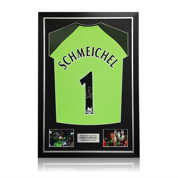 Peter Schmeichel Hand Signed Manchester United 1999 Replica Shirt in Deluxe Classic Frame. The Shirt features a very clear signature which is located on the #1. The Shirts were personally hand-signed by Peter at a Private AAA Sports Memorabilia Signing on 11th October 2025 and comes with Full AAA Sports Memorabilia Certificate of Authenticity Including Photo Proof