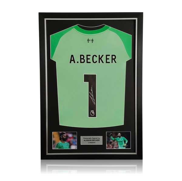 Alisson Becker Hand Signed Liverpool 2025-26 Home Goalkeepers Shirt In Deluxe Classic Frame. The Item features a very clear signature on the #1. The Item was personally hand-signed by Alisson at a Private Signing Session and comes with Full Certificate of Authenticity from AAA Sports Memorabilia Which Includes a Photograph Proof.